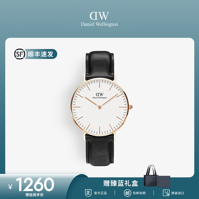 DW手表男女同款 CLASSIC系列經典輕奢時尚腕表酷黑皮帶簡約石英表