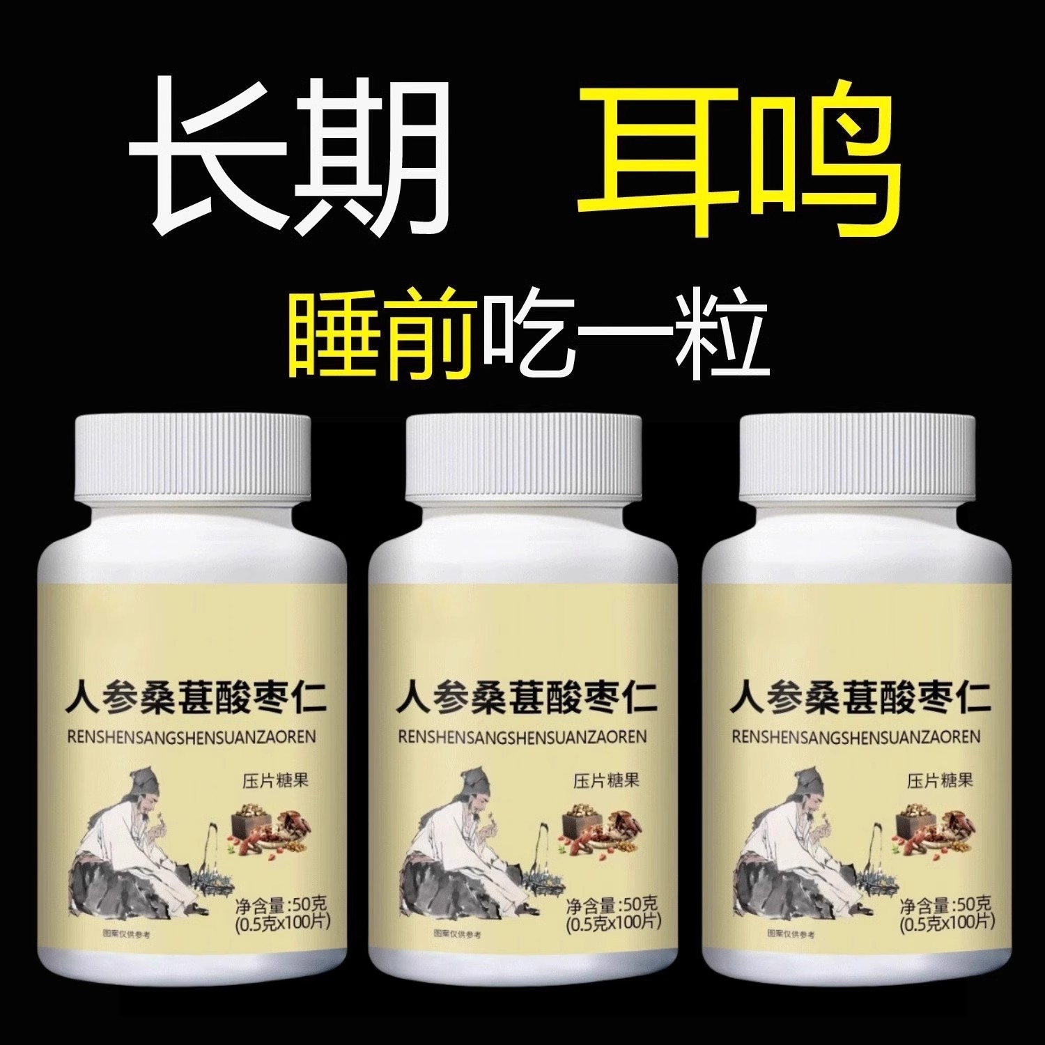 睡前二粒 耳朵鳴嗡翁響蟬鳴聲聽下絳人參桑葚酸棗仁