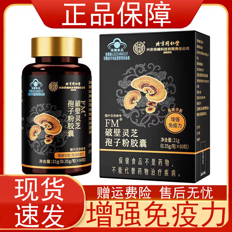 北京同仁堂破壁靈芝孢子粉膠囊免疫力低下者增強免疫力保健食品正