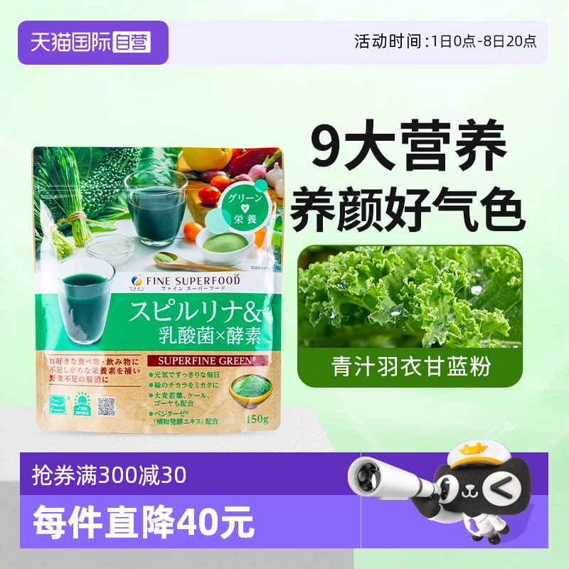 【自營】fine日本進口蔬菜甘藍膳食纖維粉螺旋藻青汁粉乳酸菌150g