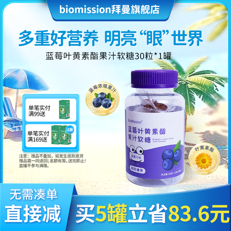 拜曼藍莓葉黃素酯片軟糖成人兒童中老年關愛眼睛正品官方旗艦店