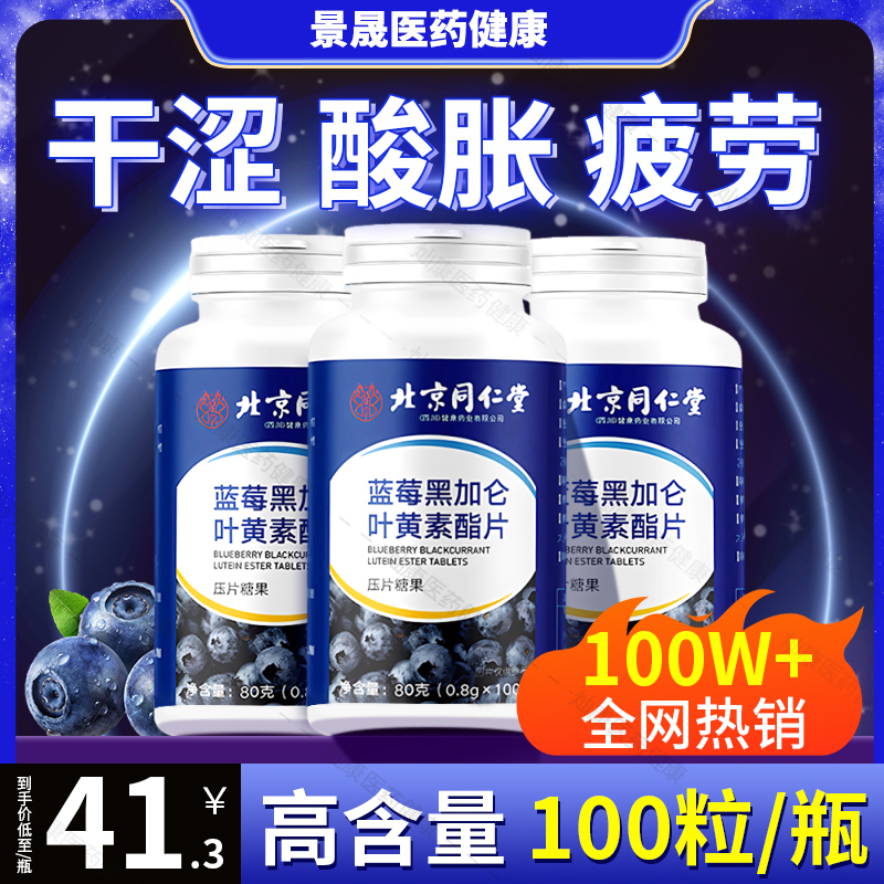 北京同仁堂藍莓黑加侖葉黃素酯片成年中老年男女疲勞干澀模糊正品