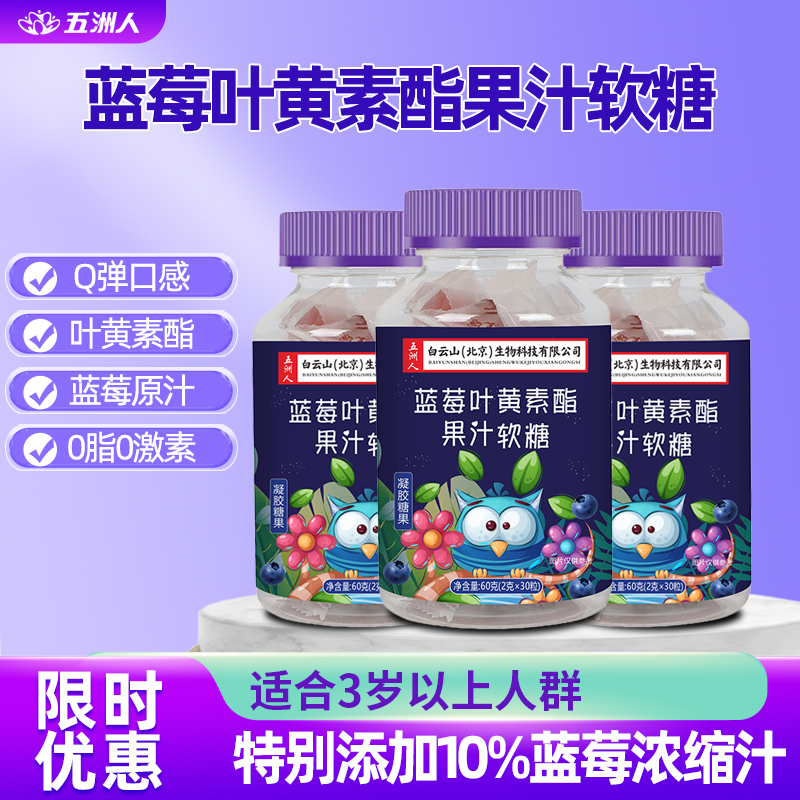 黑加侖藍莓葉黃素送兒童軟糖官方旗艦店藍莓素脂壓片糖果工廠直發