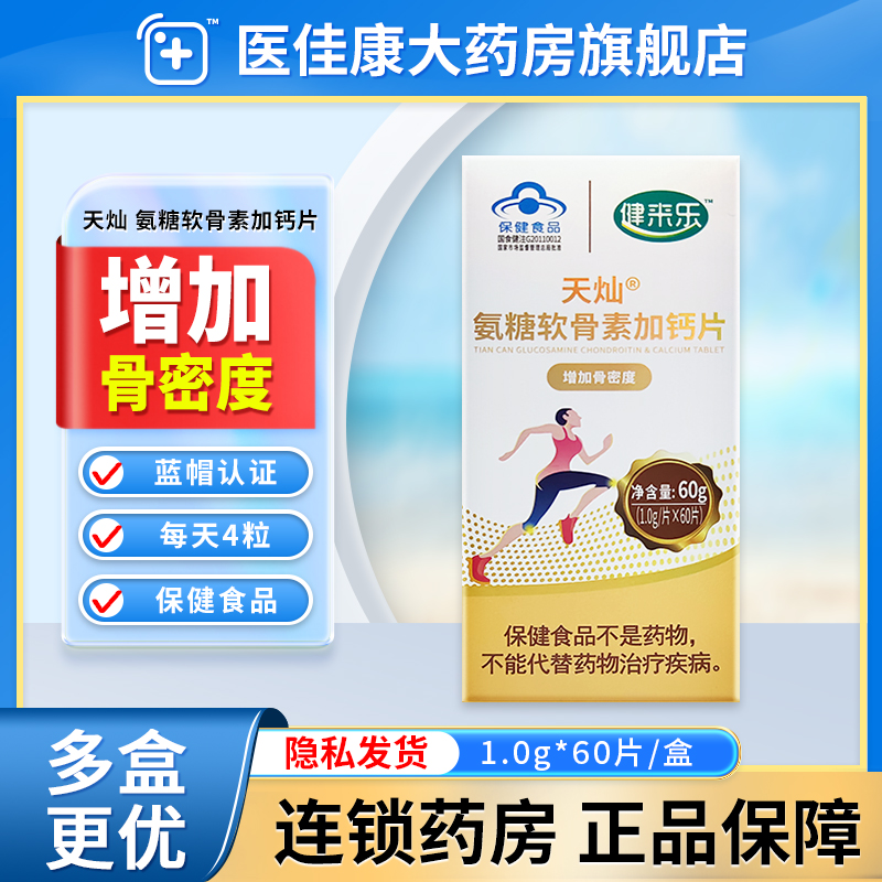 健來樂天燦氨糖軟骨素加鈣片60片增加骨密度中老年人官方旗艦店正