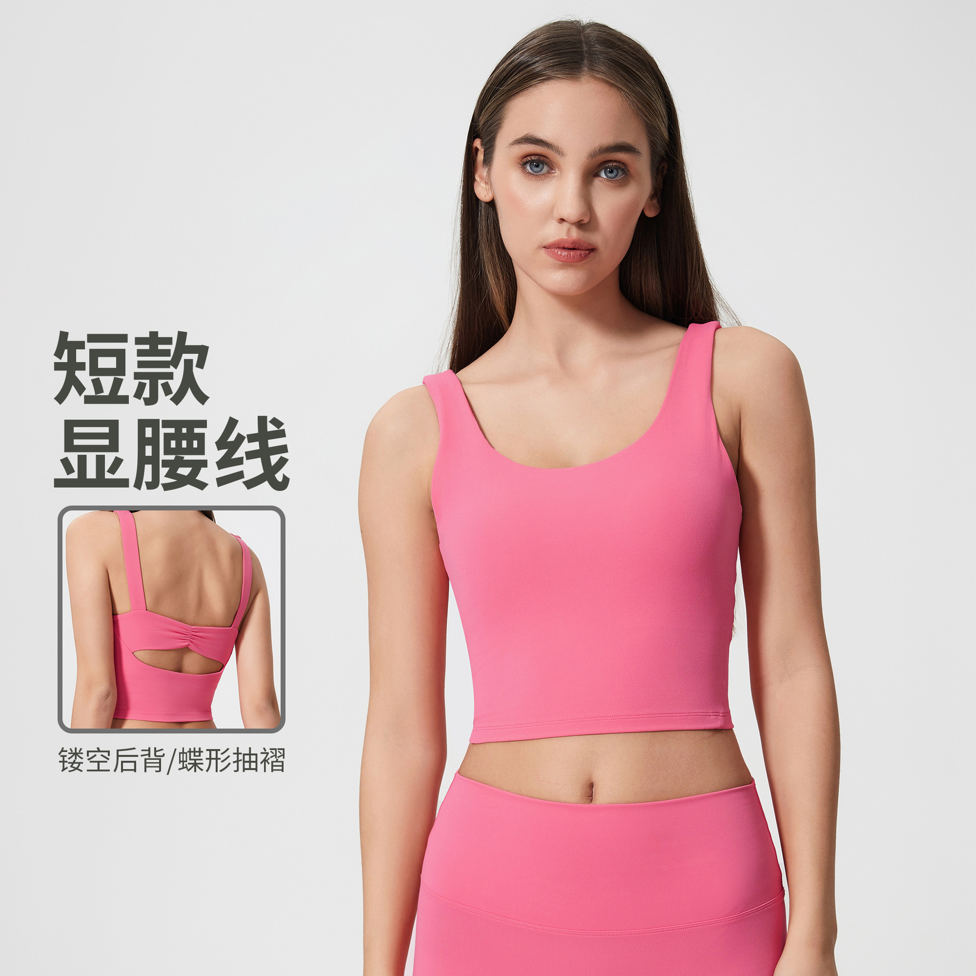 運動內衣女高強度健身防下垂背心式文胸鏤空美背瑜伽背心D25054