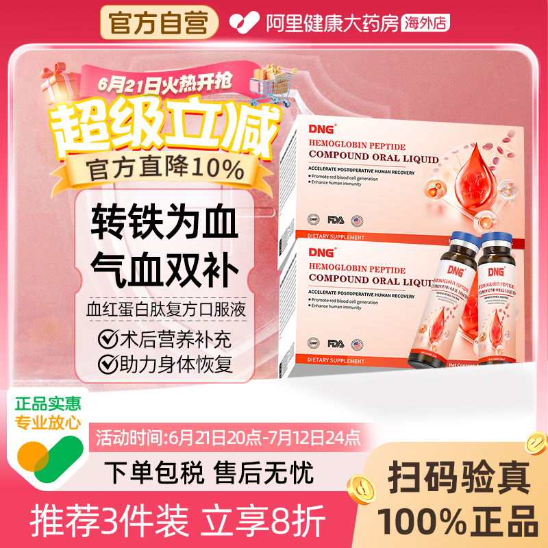 DNG進口血紅蛋白肽口服液中老年氣虛貧血補氣益血術后恢復營養品