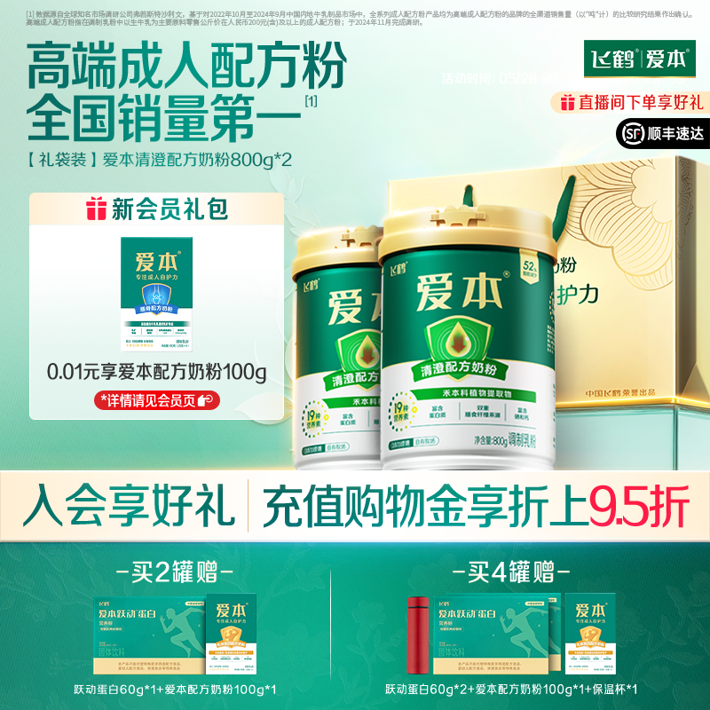 飛鶴愛本清澄配方奶粉中老年奶粉0蔗糖添加高鈣低GI長輩送禮禮盒
