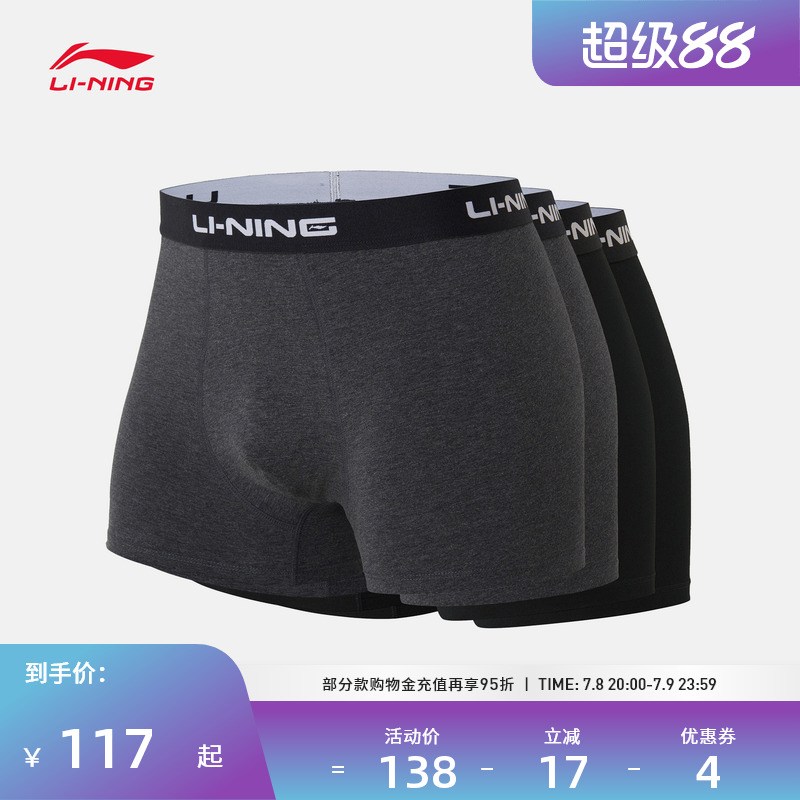 李寧內褲 健身系列 男款抑菌清新舒適高彈柔軟平角內褲四雙套裝