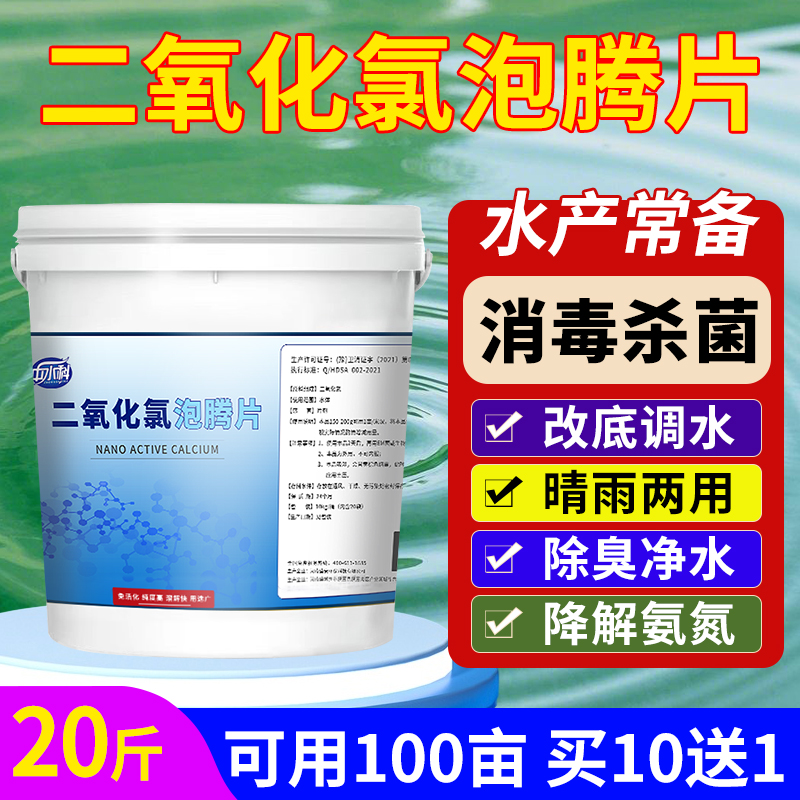 二氧化氯泡騰片水產養殖魚藥殺菌消毒魚蝦池塘水庫水質清澈凈化劑