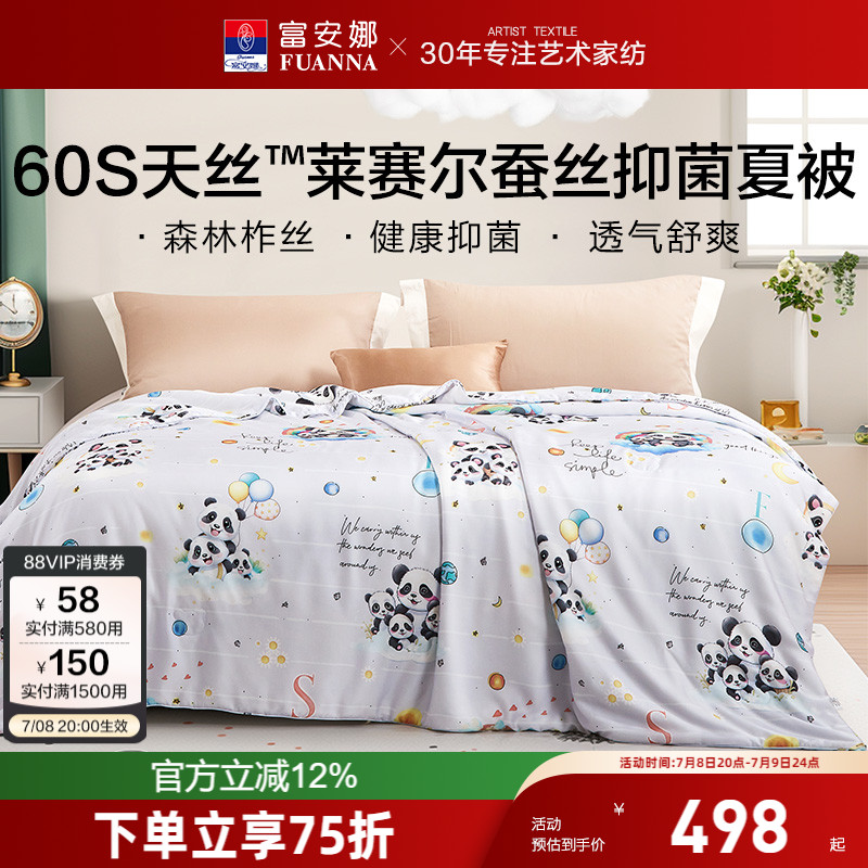 富安娜蠶絲被60S天絲被子萊賽爾空調被學生夏季春秋兒童夏涼被芯