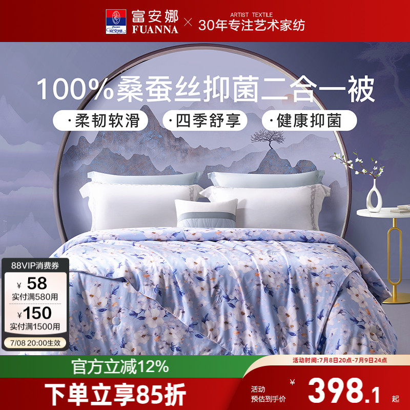 富安娜被子桑蠶絲二合一被子母被芯春秋被冬被四季可用被褥空調被