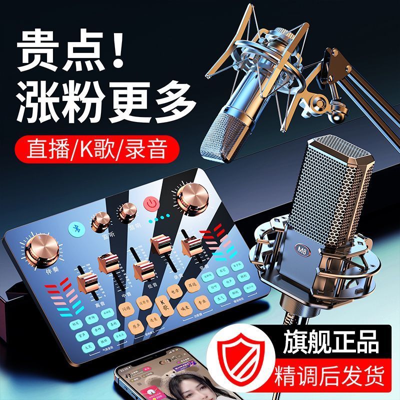 V9手機直播聲卡外置唱K歌臺式機電腦通用全套麥克風主播設備