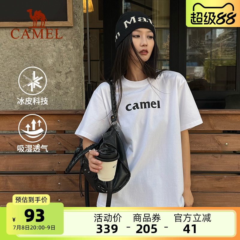 駱駝夏日短袖女夏季情侶T恤寬松復古純色運動休閑上衣男純棉T神