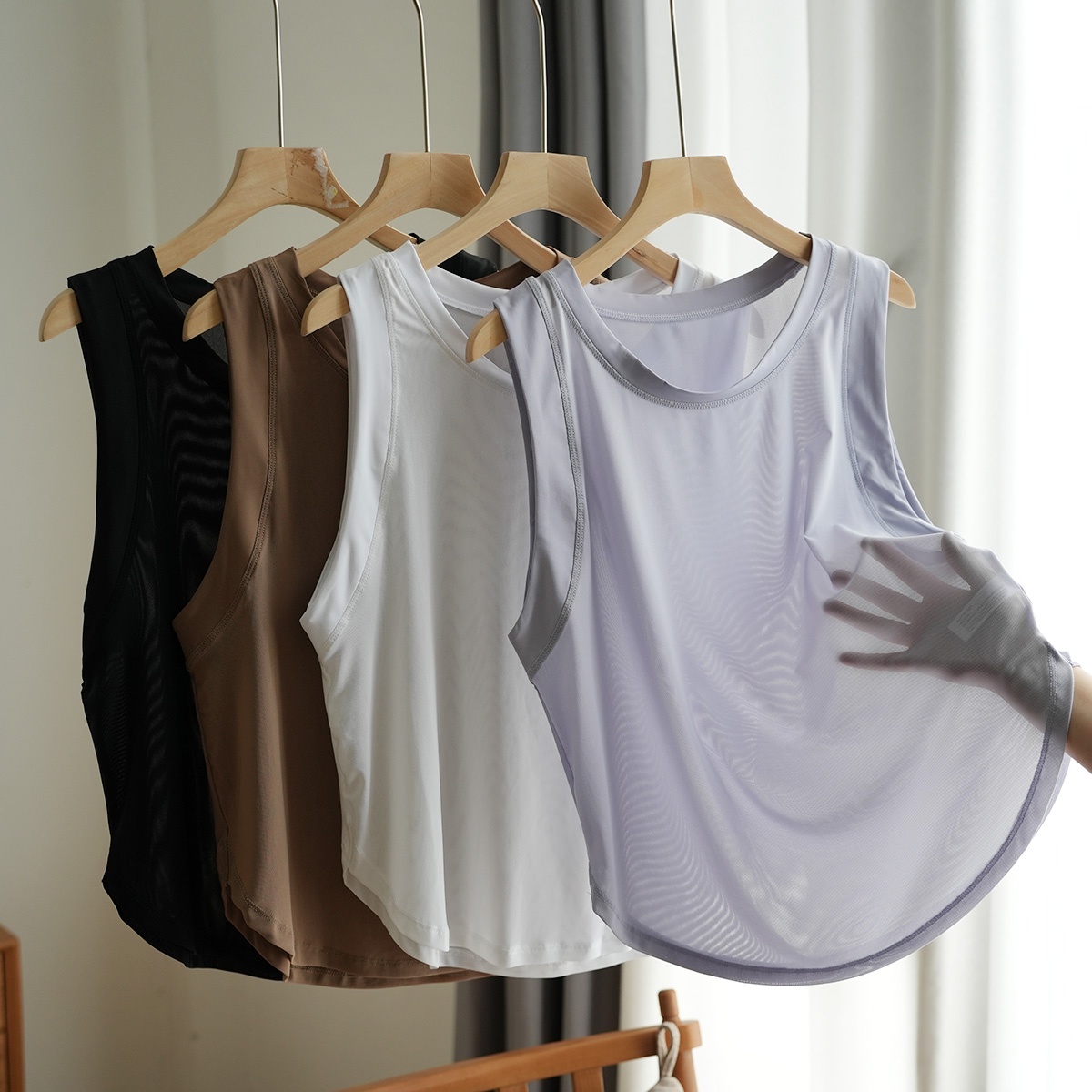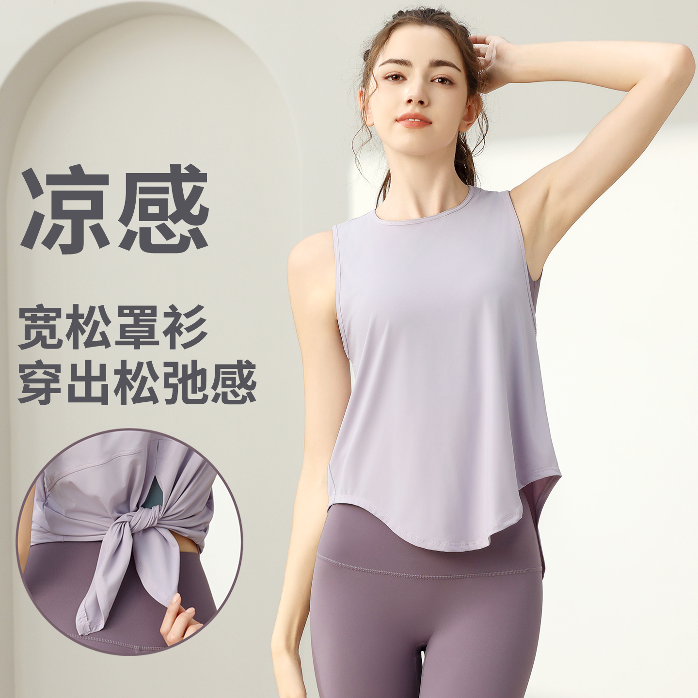 瑜伽服運動背心女寬松冰絲外搭透氣跑步上衣外穿無袖健身罩衫夏