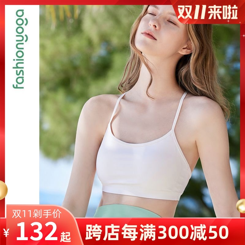 Vitalis裸感性感美背瑜伽文胸固定胸墊運動內衣女新款細帶跑步