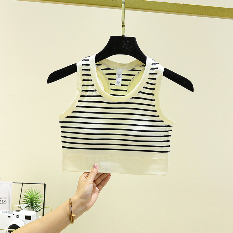 一體胸墊b運動內衣女聚攏顯瘦健身文胸高級感訓練跑步瑜伽條紋背