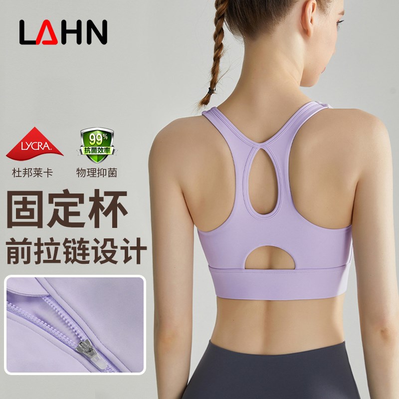 前拉鏈運動內衣女高強度固定杯防震跑步聚攏防R下垂運動瑜伽背心