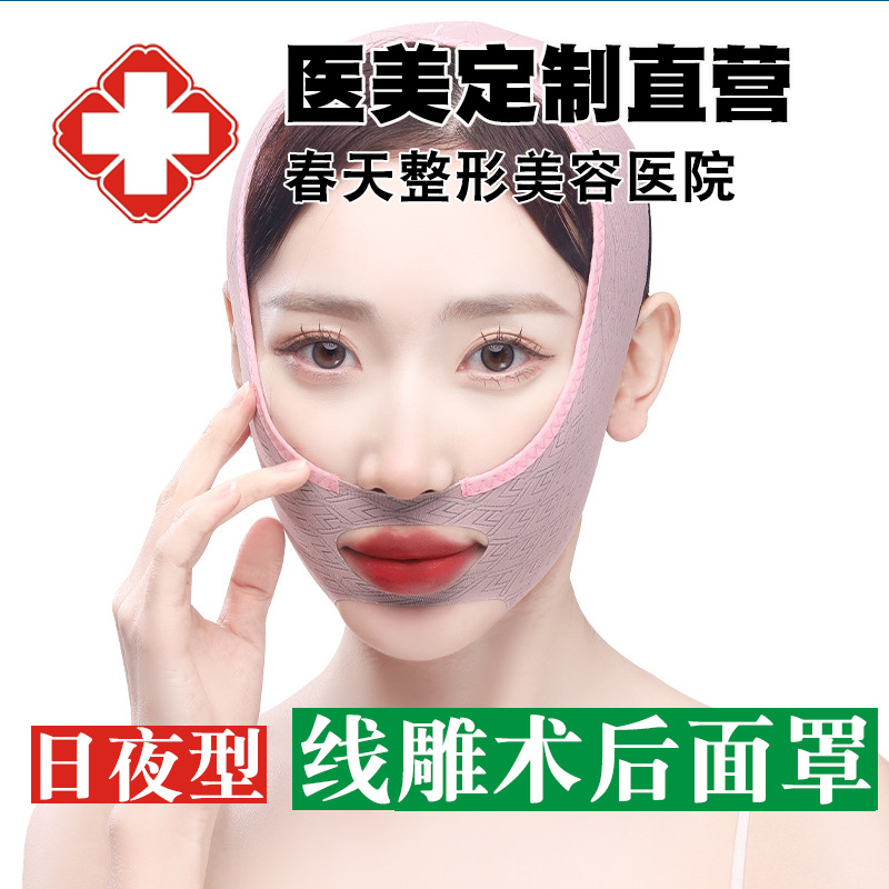 醫用線雕吸脂術后提拉緊致面罩v臉繃帶頸頜睡眠神器下顎瘦臉頭套