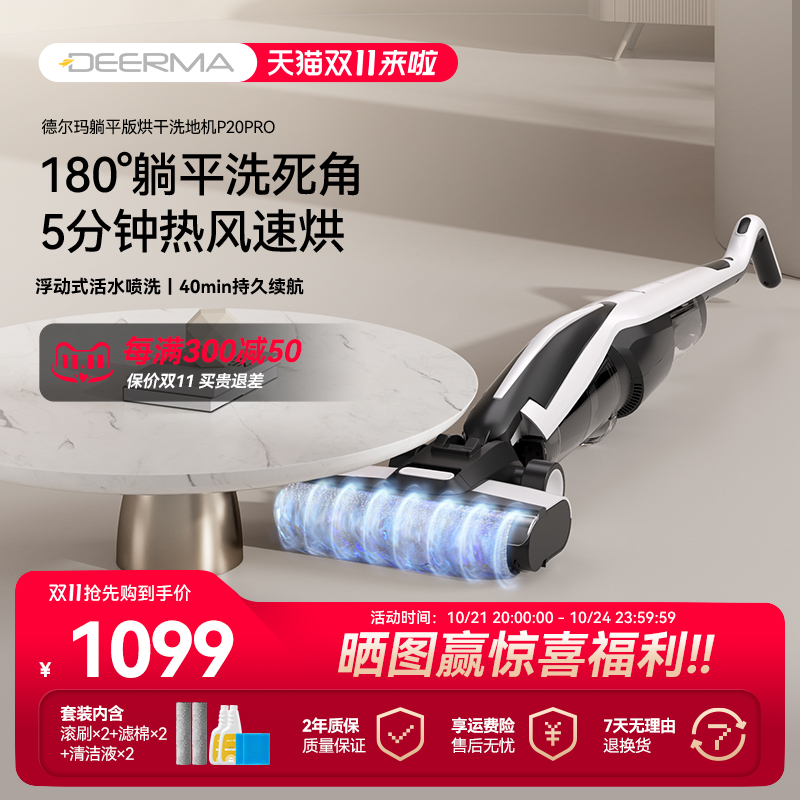 德爾瑪躺平洗地機P20Pro延邊吸拖洗一體機家用無線大吸力智能拖把