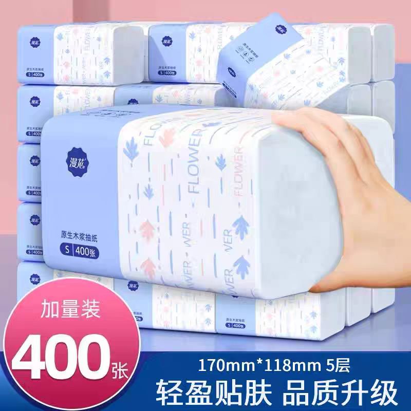 漫花抽紙大包5層400張可濕水面巾紙餐巾紙家用紙巾實惠正品保證
