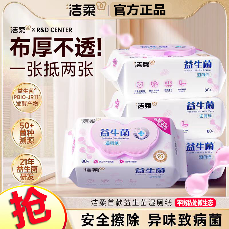 潔柔濕廁紙益生菌溫和大包加厚可沖馬桶裝私處清潔除菌濕巾
