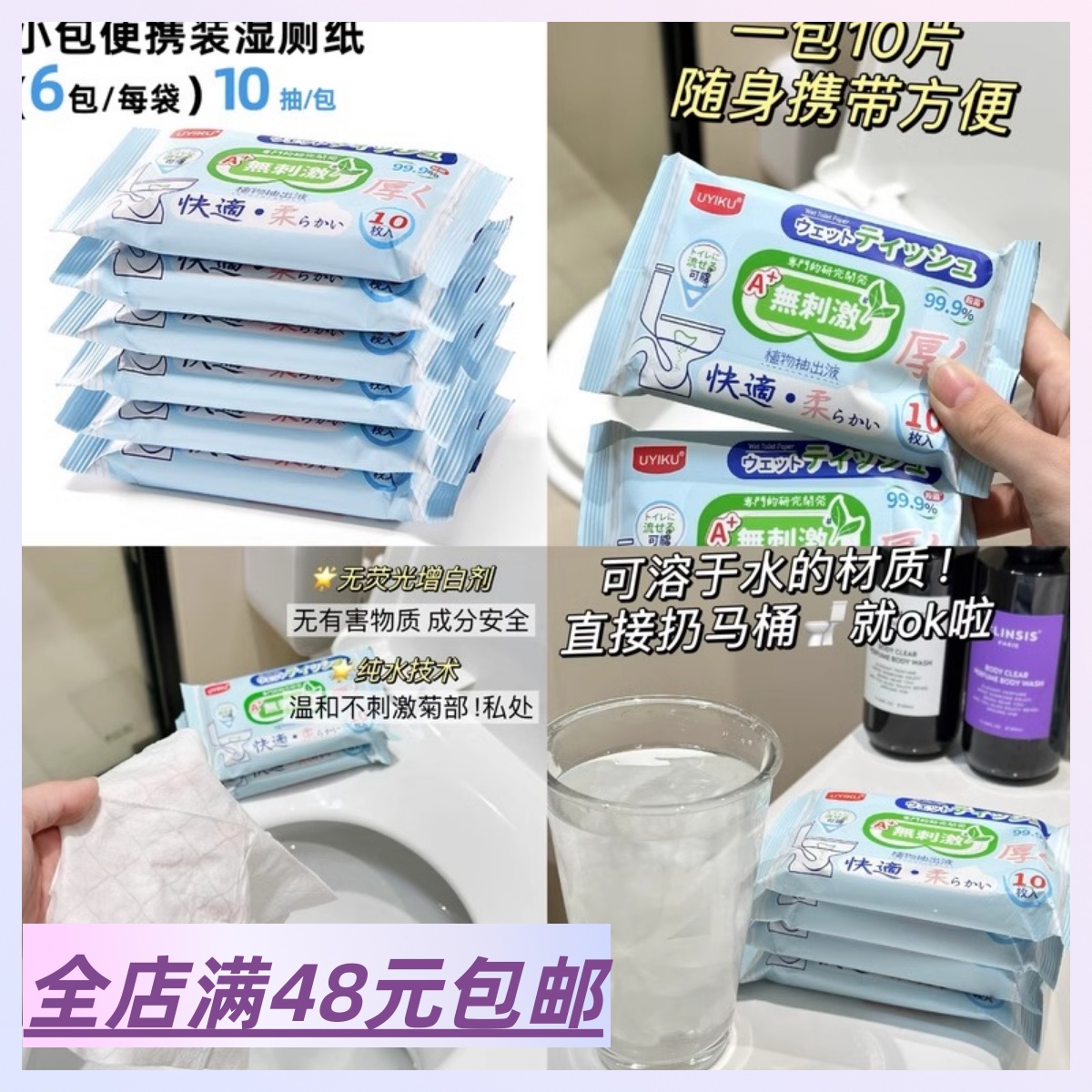 (6包裝)便攜10抽多功能衛生濕廁紙 可沖如廁擦PP濕巾