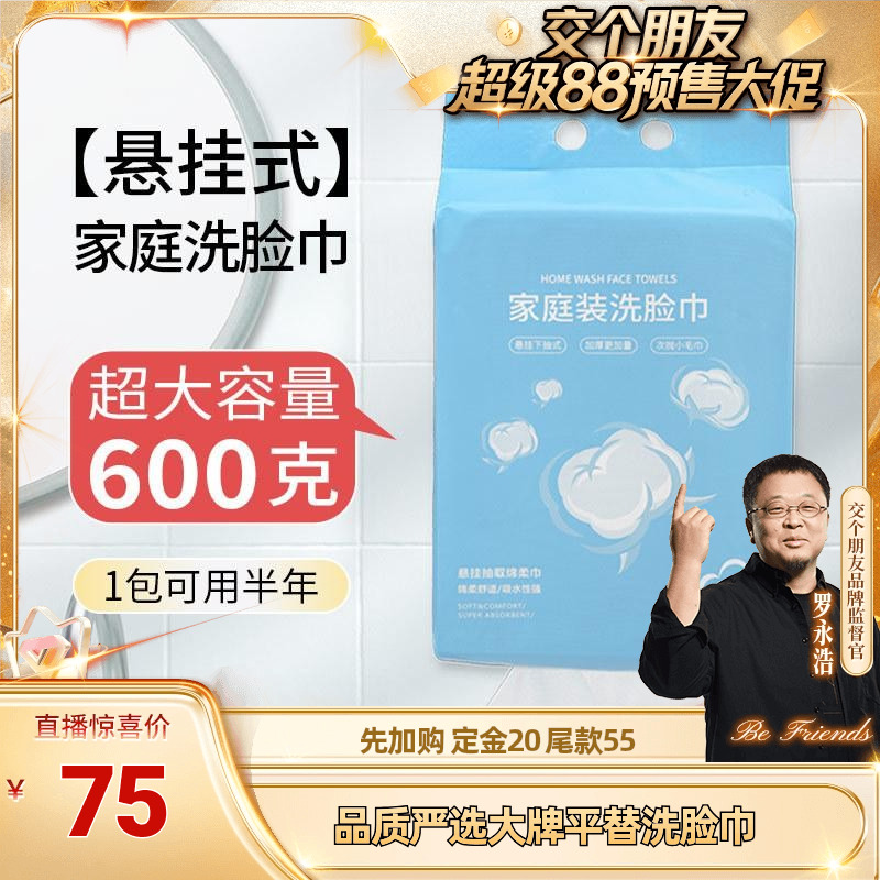 【付尾款!交個朋友超級88】一次性洗臉巾加厚懸掛潔面巾160抽