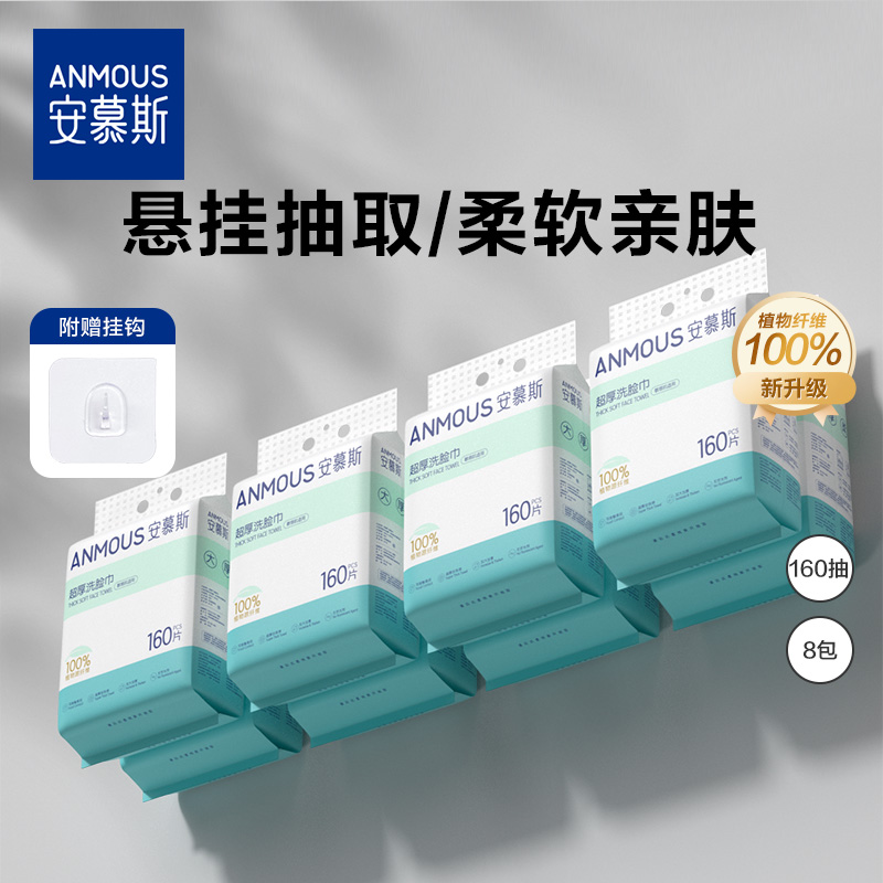 安慕斯洗臉巾一次性壁掛懸掛式綿柔擦臉巾干濕兩用卸妝潔面8提裝