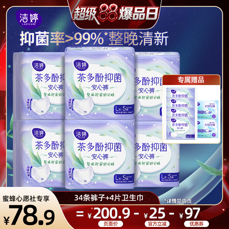 【蜜蜂心愿社】潔婷茶多酚抑菌褲褲型衛生巾官方旗艦店zb
