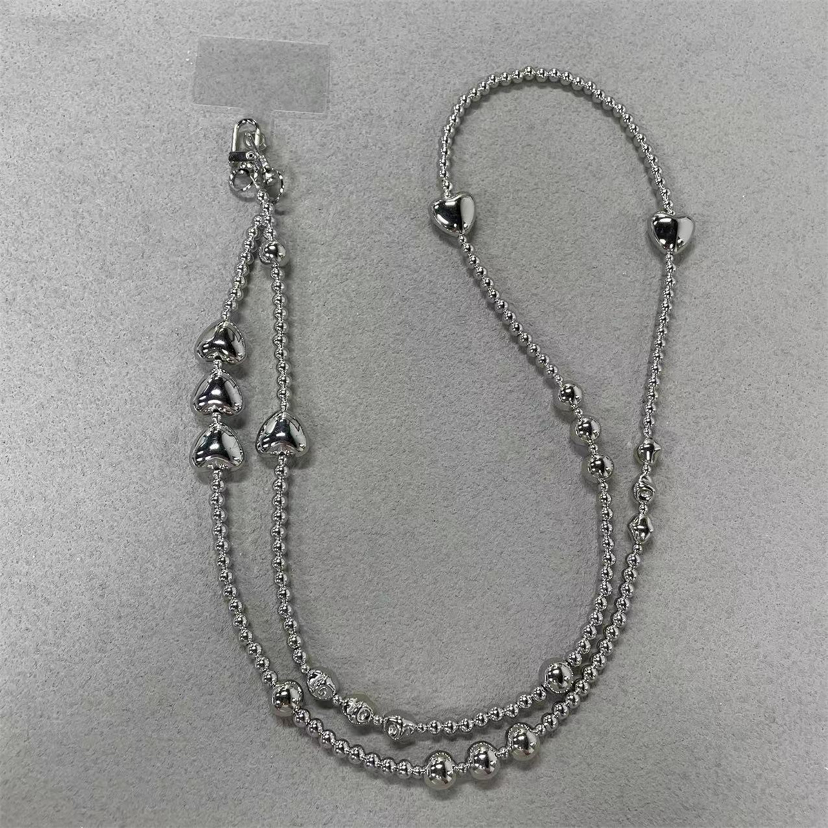 ins冷淡風鏈條斜挎可背手工串珠背包掛鏈愛心包包防丟掛繩鏈