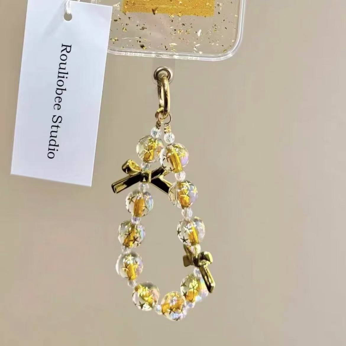 財運不斷!金色水晶蝴蝶結玄學手機鏈精致高級感包包掛件招財配飾