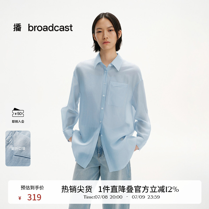 播藍色輕奢淡人翻領襯衫女25夏季新款輕薄休閑長袖襯衣DDS2CD5003