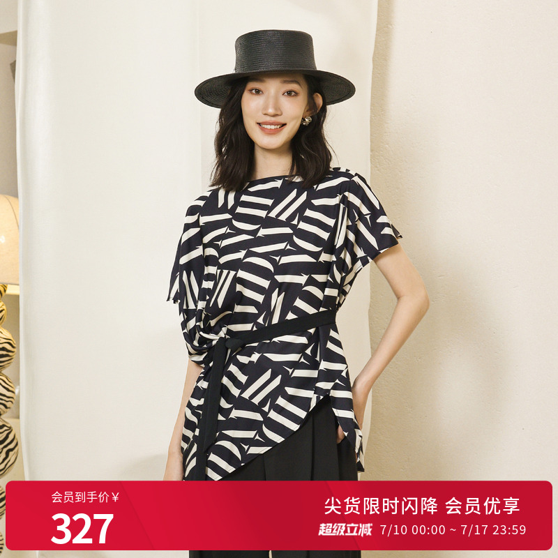 婉甸2025夏季新品黑白字母幾何圖案蝙蝠上衣1242H07JH2
