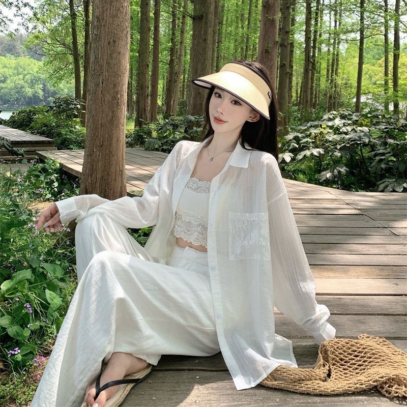 白色襯衫女2025夏季新款爆款法式上衣外套氣質防曬蕾絲長袖襯衣女