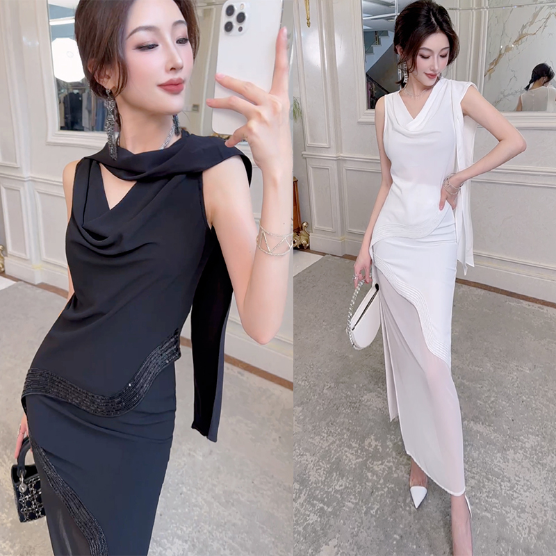 飛姐定制飄帶設計雪紡無袖上衣女亮片氛圍感背心別致收腰顯瘦