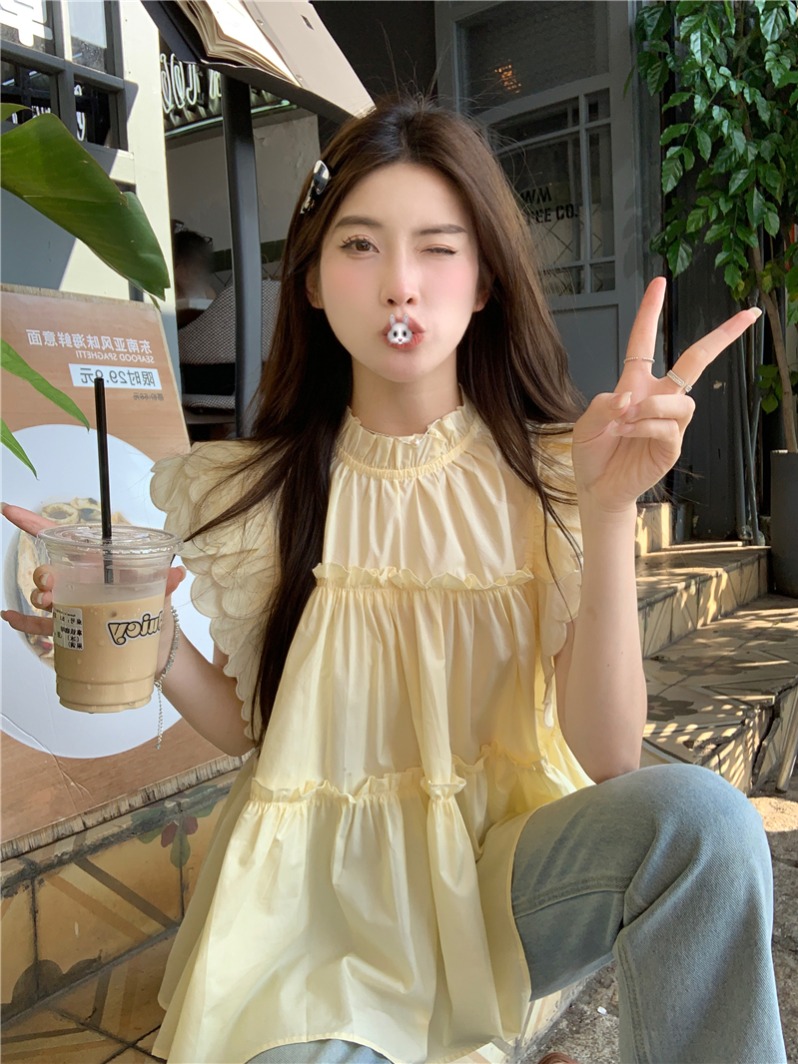 Misi.Camii2025年春夏新款女裝法式軟蕾絲荷葉領外套時尚百搭上衣
