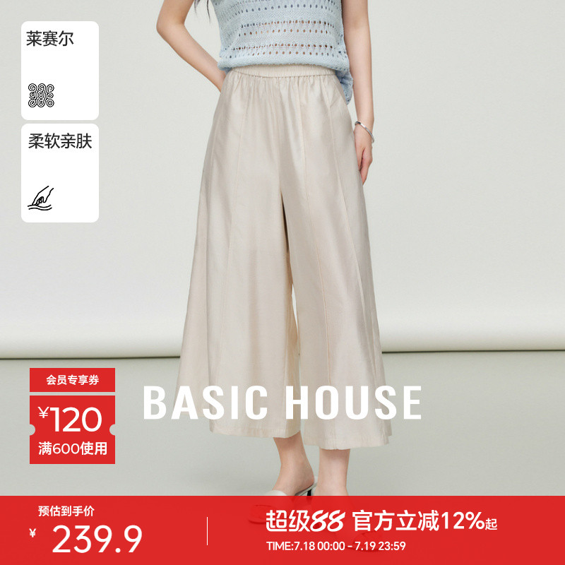 Basic House/百家好夏季新款高腰垂感七分褲薄款寬松韓版休閑褲女
