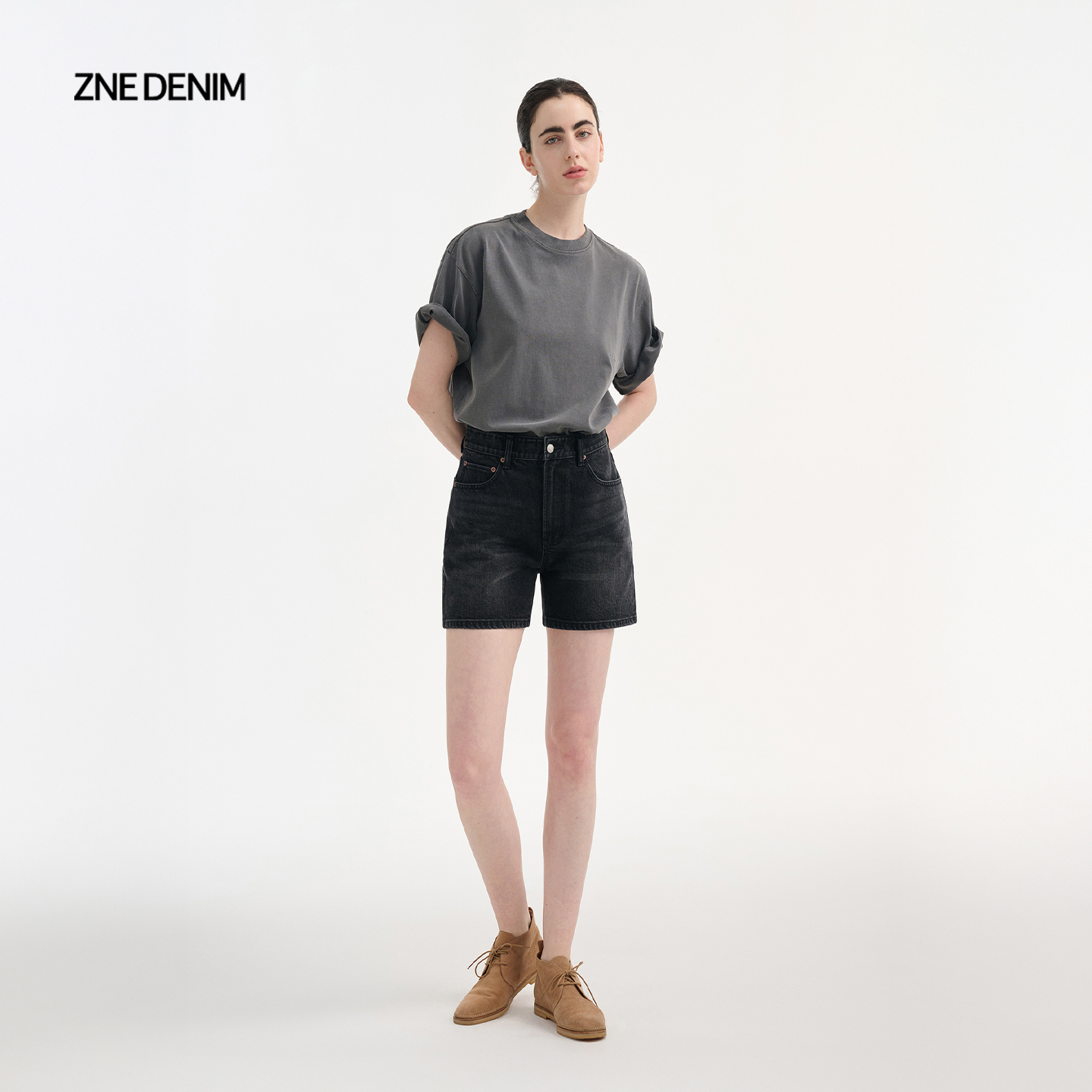 ZNE自在練達質感黑色棉彈牛仔短褲女1279