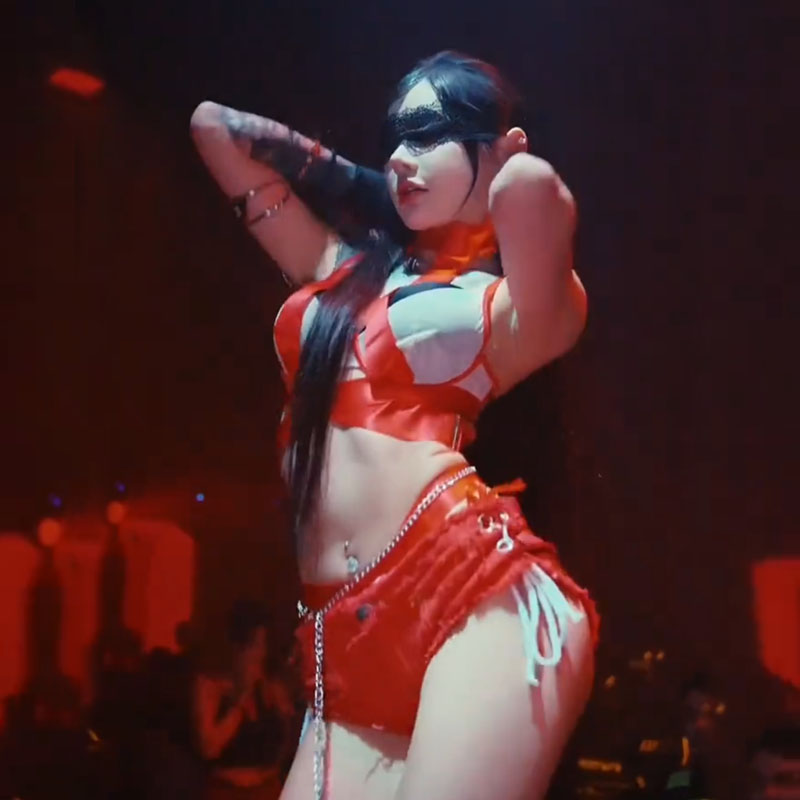 歐美風御姐顯胸交叉綁帶掛脖背心顯瘦短褲夜店蹦迪露背演出誘人女