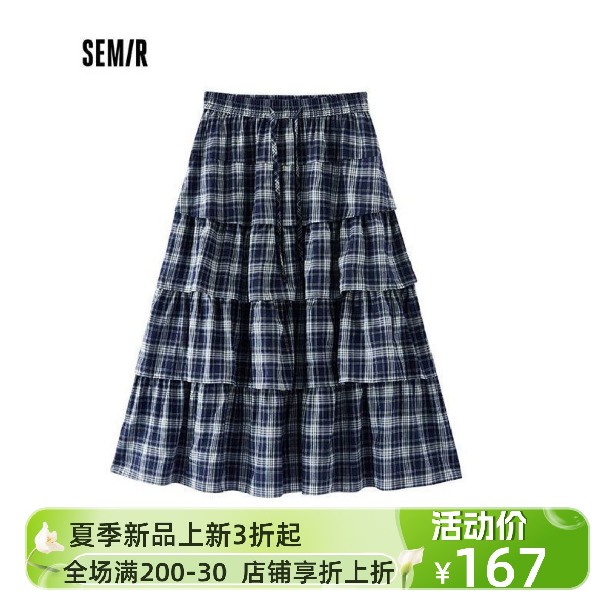 【商場同款】森馬夏季女款復古多層荷葉邊格紋蛋糕裙107325120005