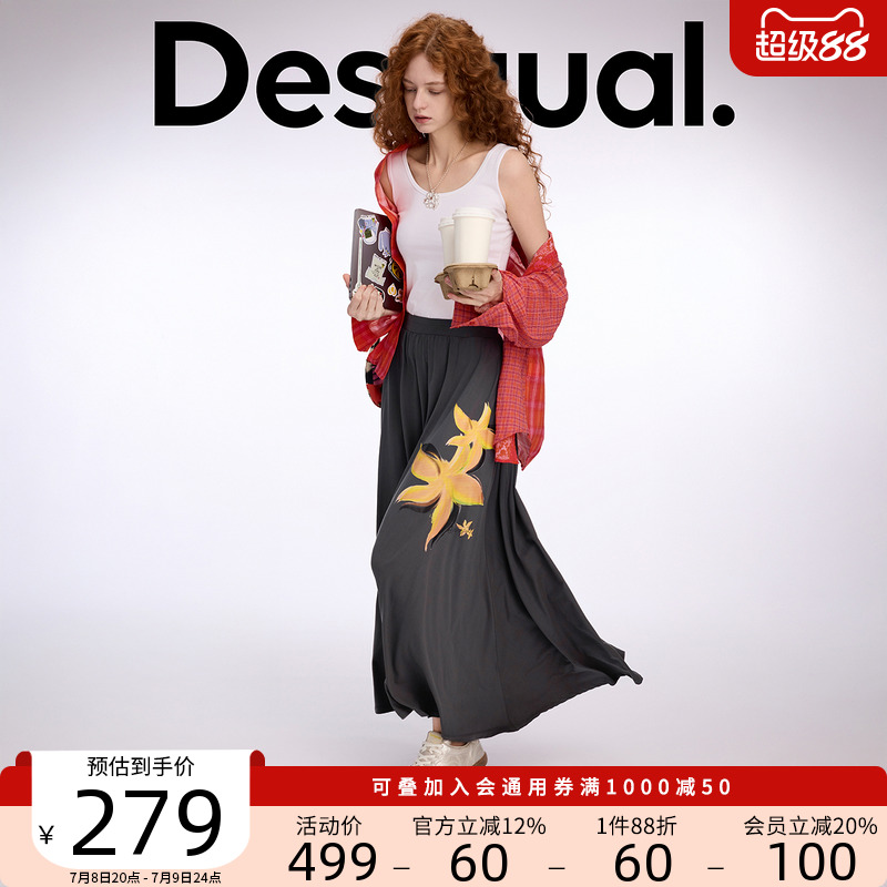 Desigual【博主同款】25春夏新款花朵印花彈力大擺裙半身裙
