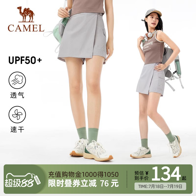 Camel駱駝戶外速干短褲女裙褲夏季冰感防曬短褲透氣吸汗速干裙褲