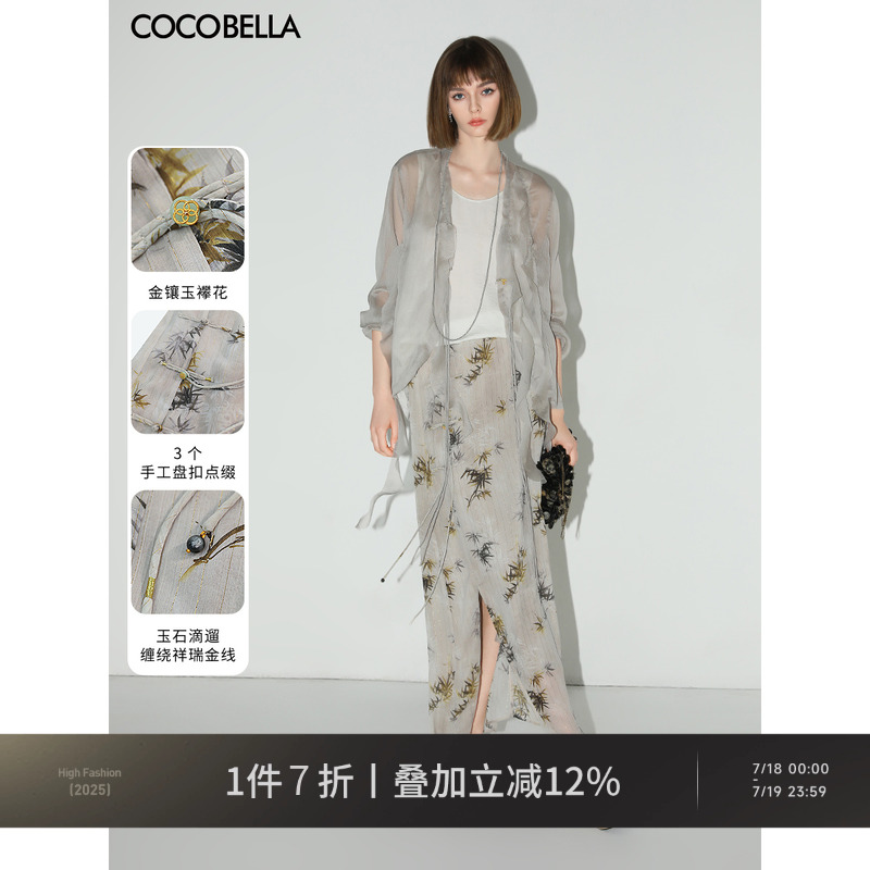 COCOBELLA禪意新中式金絲竹葉溫柔半身裙國風盤扣長裙HS3047