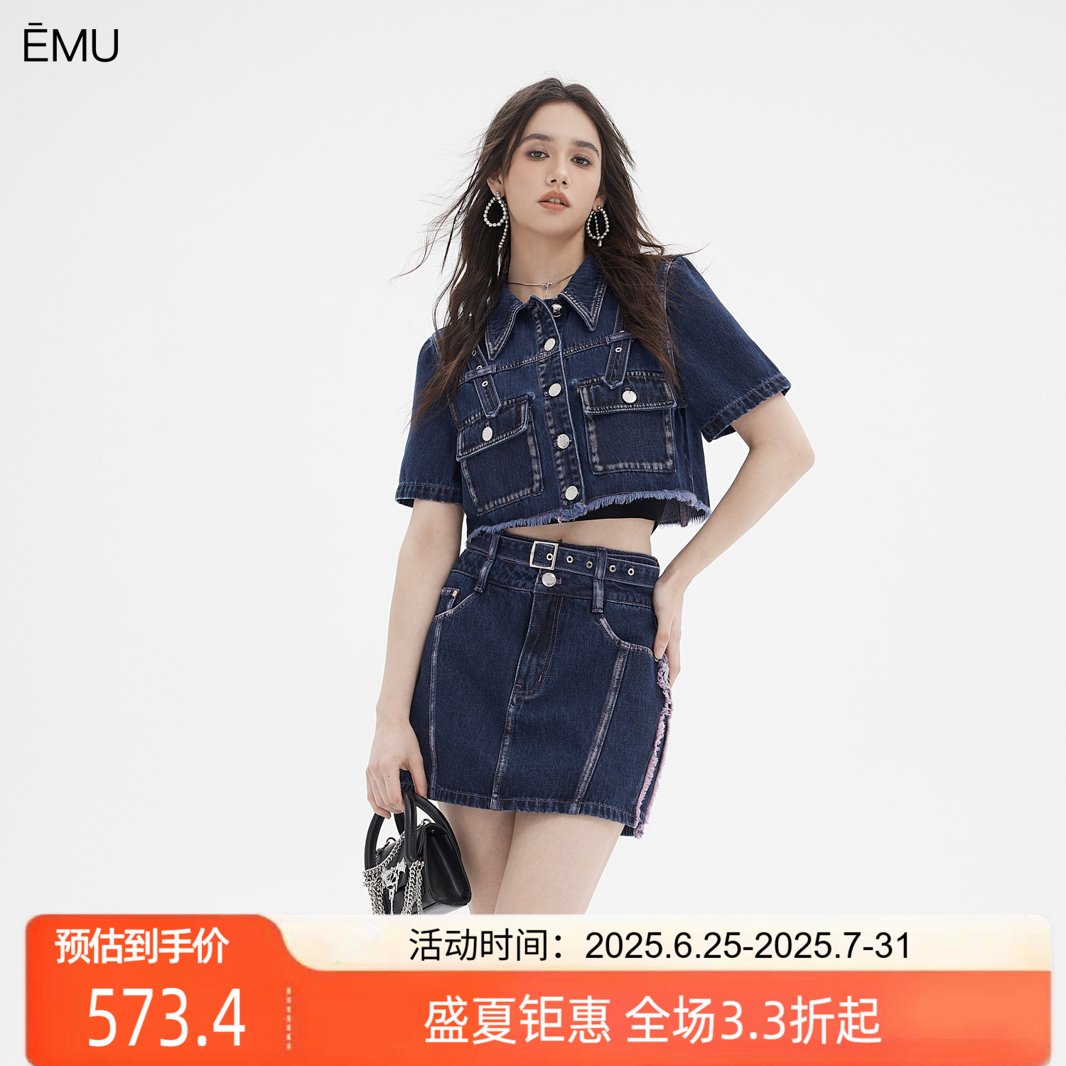 依妙EMU工裝風洗水牛仔外套半身裙套裝女2025夏款時尚潮流兩件套