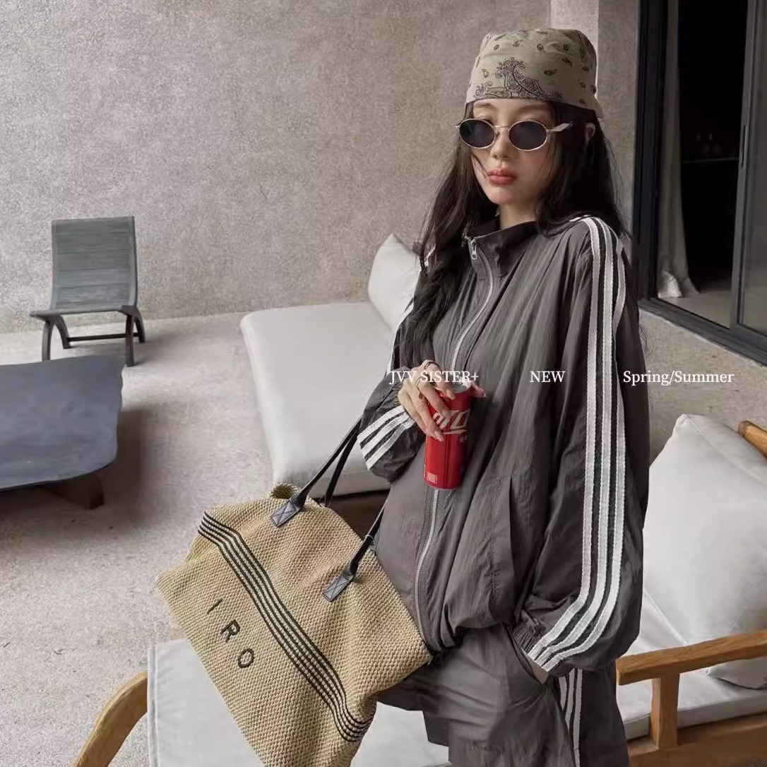 JVVSISTER夏季新款防曬薄款外套+短褲兩件套運動休閑洋氣寬松套裝