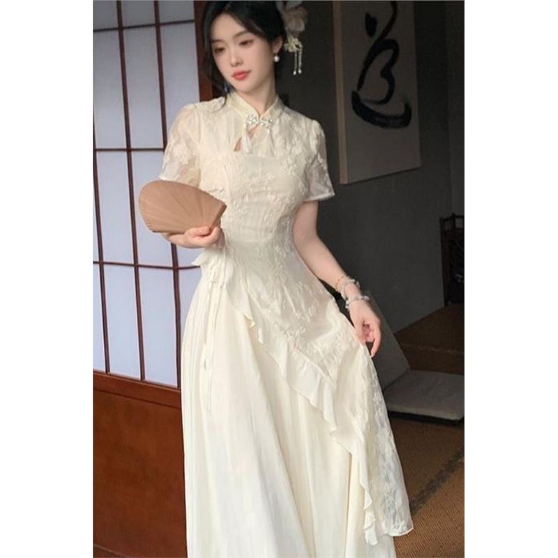 安娜同款少女2025年夏改良中式旗袍連衣裙長短款拼接小花修身a字