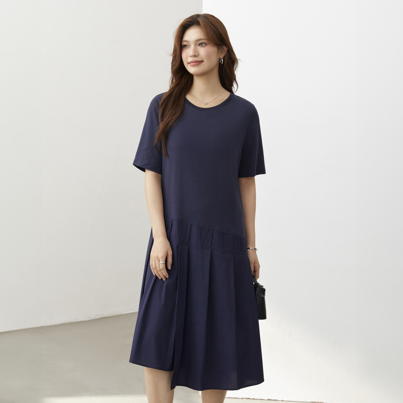 纖莉秀大碼女裝知性優雅設計感拼接簡約顯瘦連衣裙胖mm2024夏新款