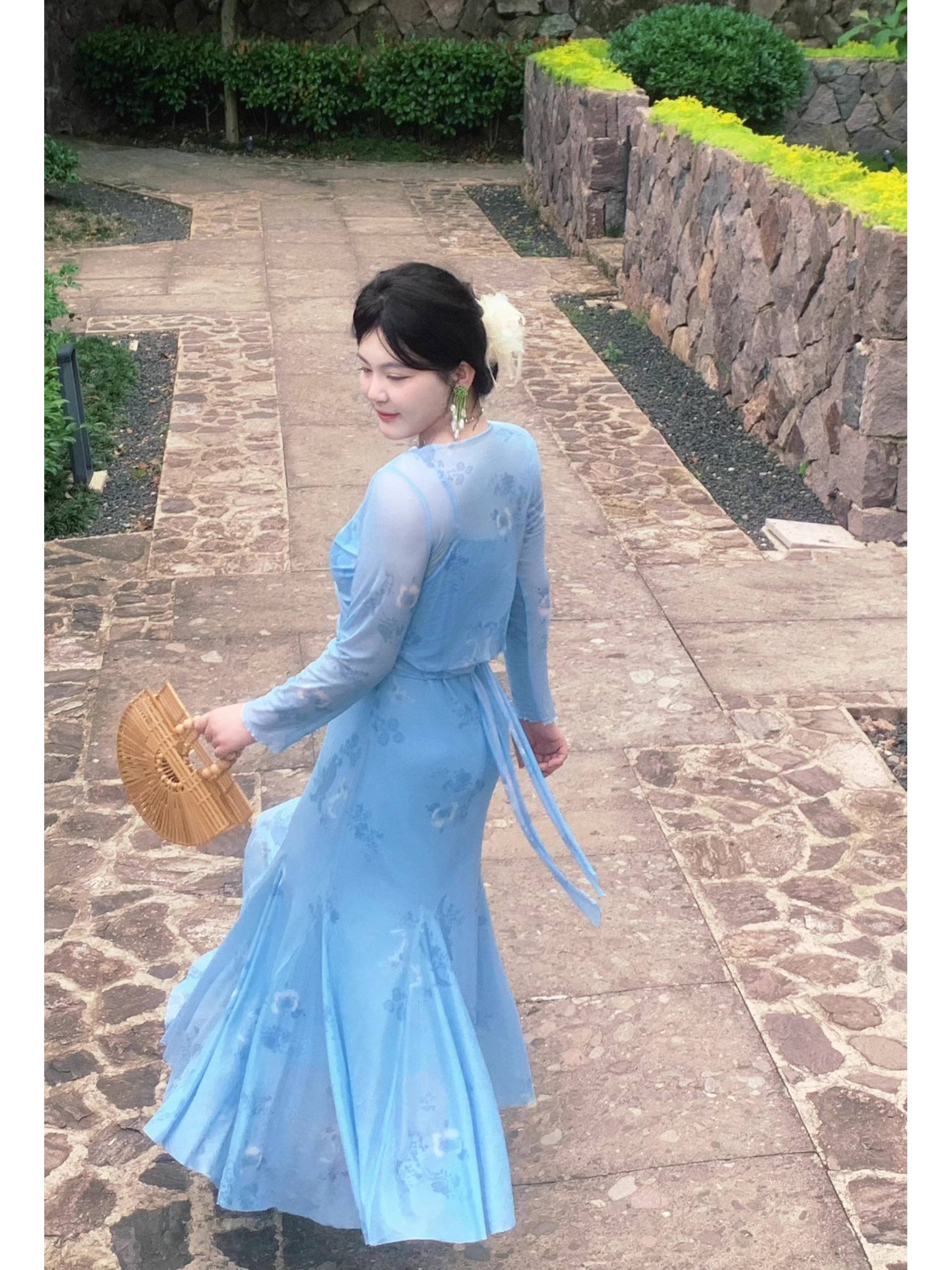 噠頭.Studio【小蘭花】微胖mm大碼2024年新款度假修身顯瘦連衣裙