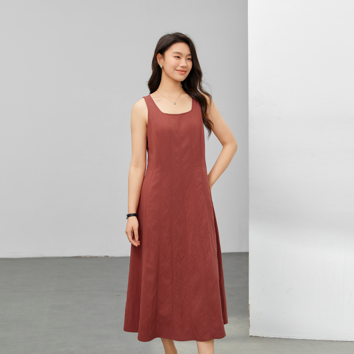 韓國代購大碼女裝2025夏季新款海軍領珍珠扣氣質棉麻質感連衣裙長