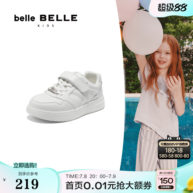 百麗童鞋魔術貼簡約小白板鞋2025春季新款透氣休閑大童鞋C2509A85